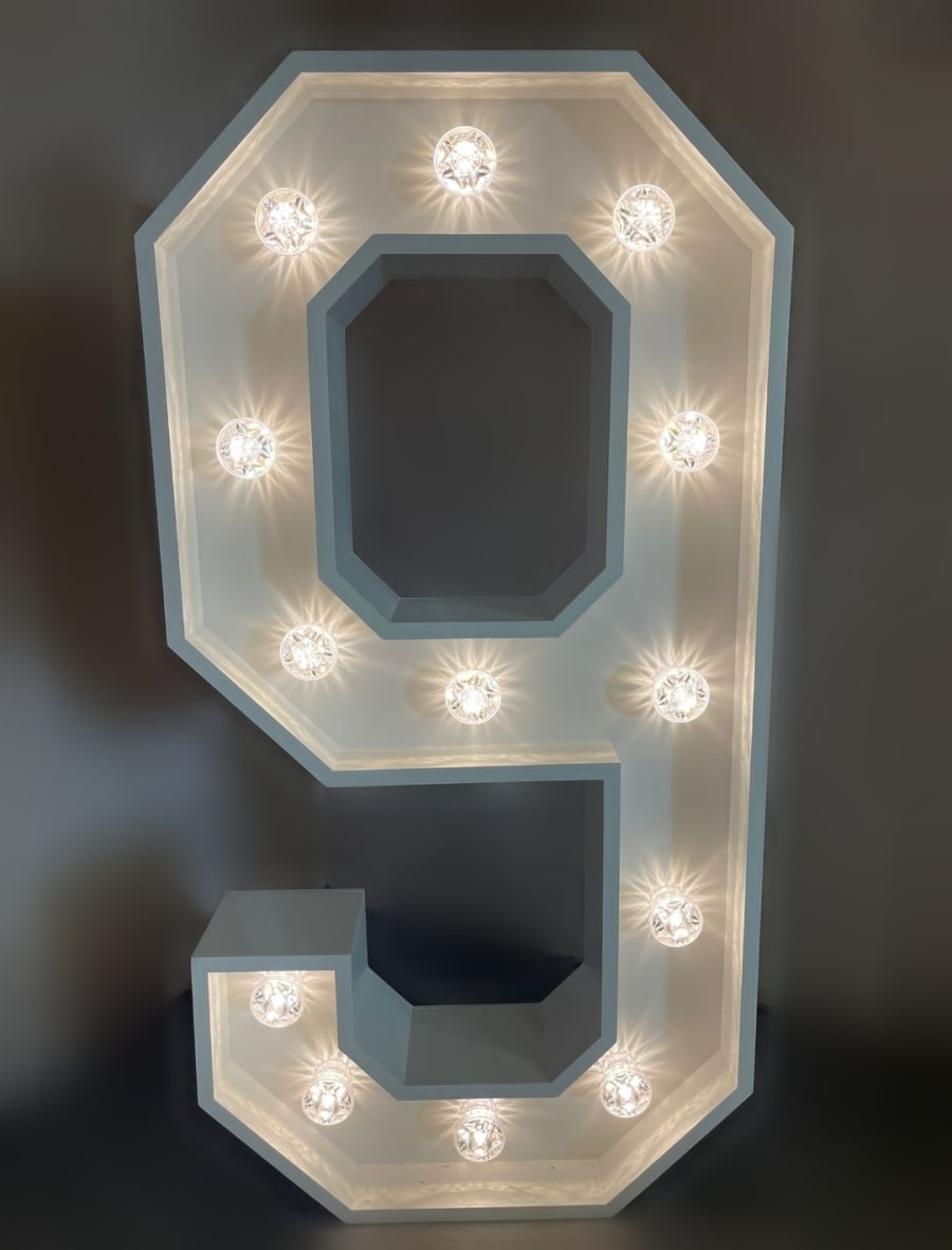 Luxury 4ft LED Number 9, also available with different colour bulbs.