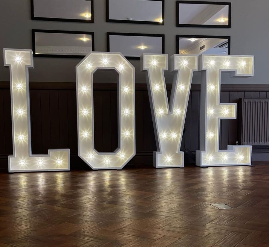 LED Light Up LOVE Letters for hire in Watford, Uxbridge, Hillingdon, Harrow and surrounding areas.