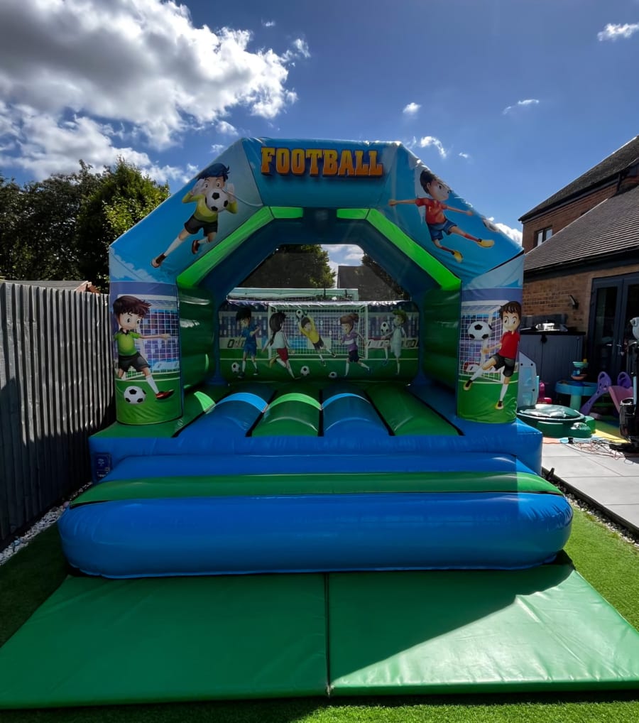 Football Bouncy Castle in Green & Blue