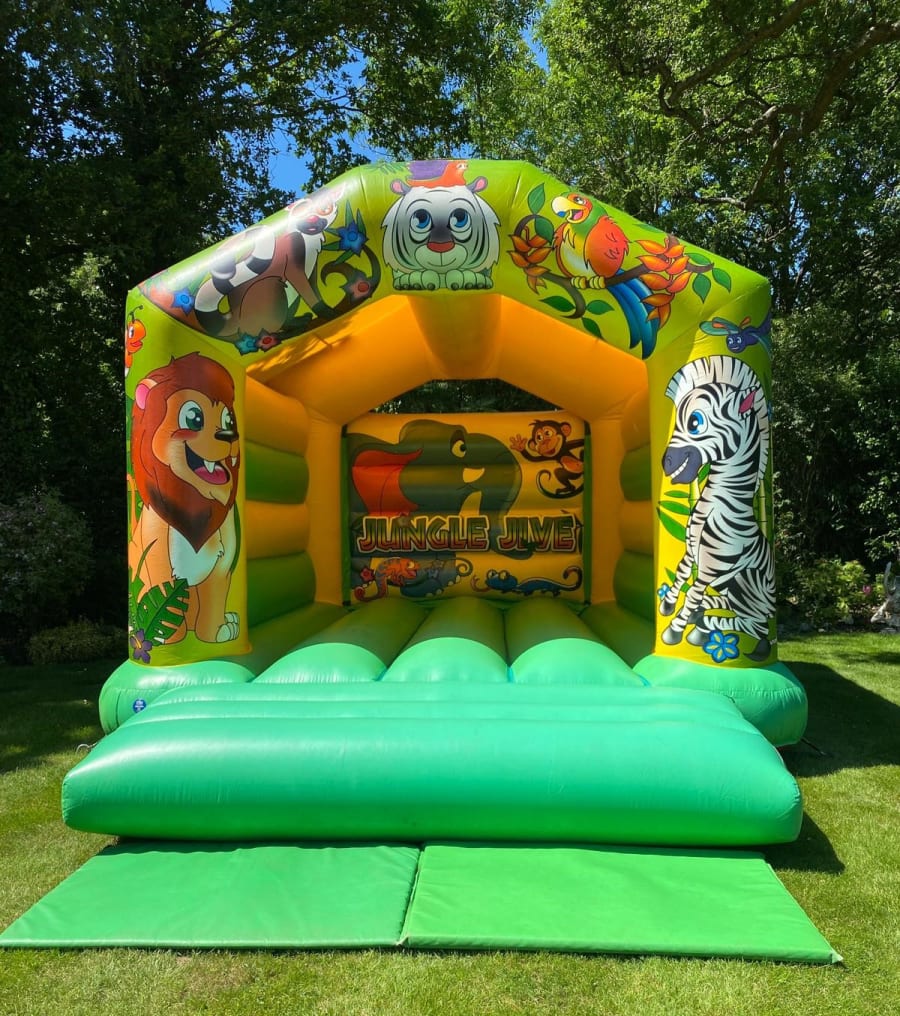 To book this Jungle themed bouncy castle, just use the big buttons below - you can even check its availability against our live diary! Our online booking system collects all the information we require, and we will confirm your details with a phone call. Or, if you have any questions about this or any other products we offer, call us now on 07540166674
