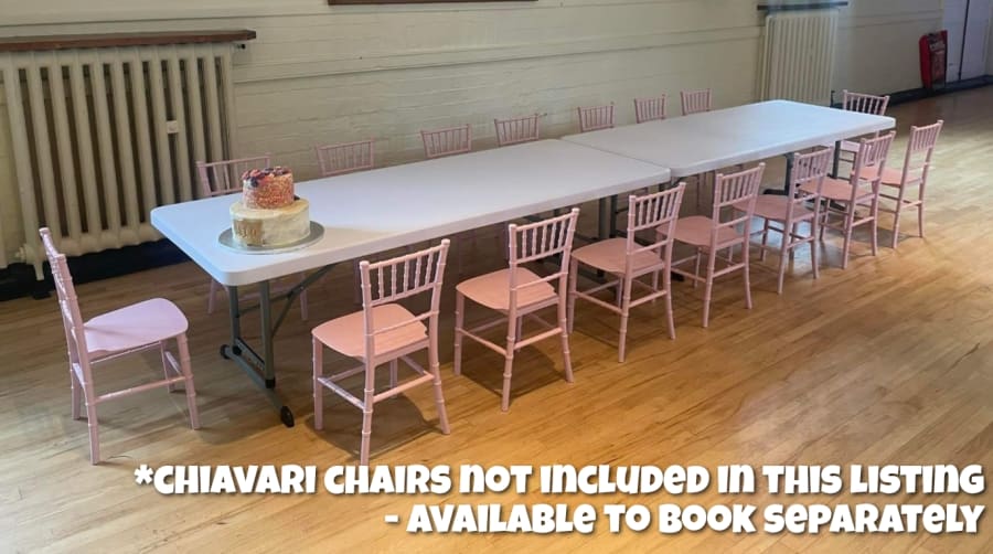 1x Table (6ft long): Fits a maximum of 10 Chiavari Chairs (4 chairs either side with 1 chair at each end)