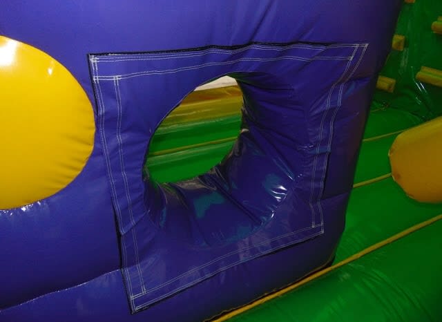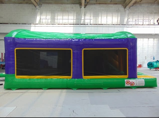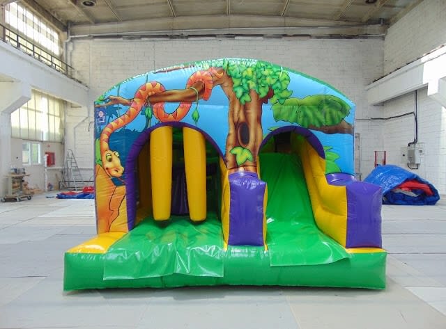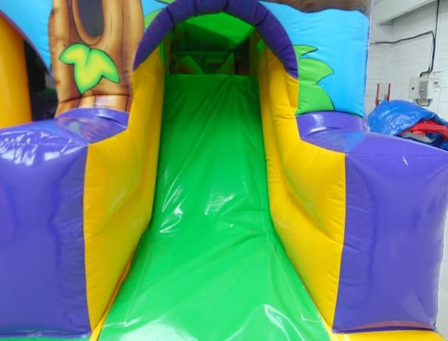 The Jungle Mini Obstacle Course is a wicked all-rounder with the bish and bash, a big climbing wall at the back of the castle, a massive bouncing area and a slide all in one bouncy castle this is great addition to any party. To avoid friction burns please make sure users are wearing long sleeves, long trousers and socks.