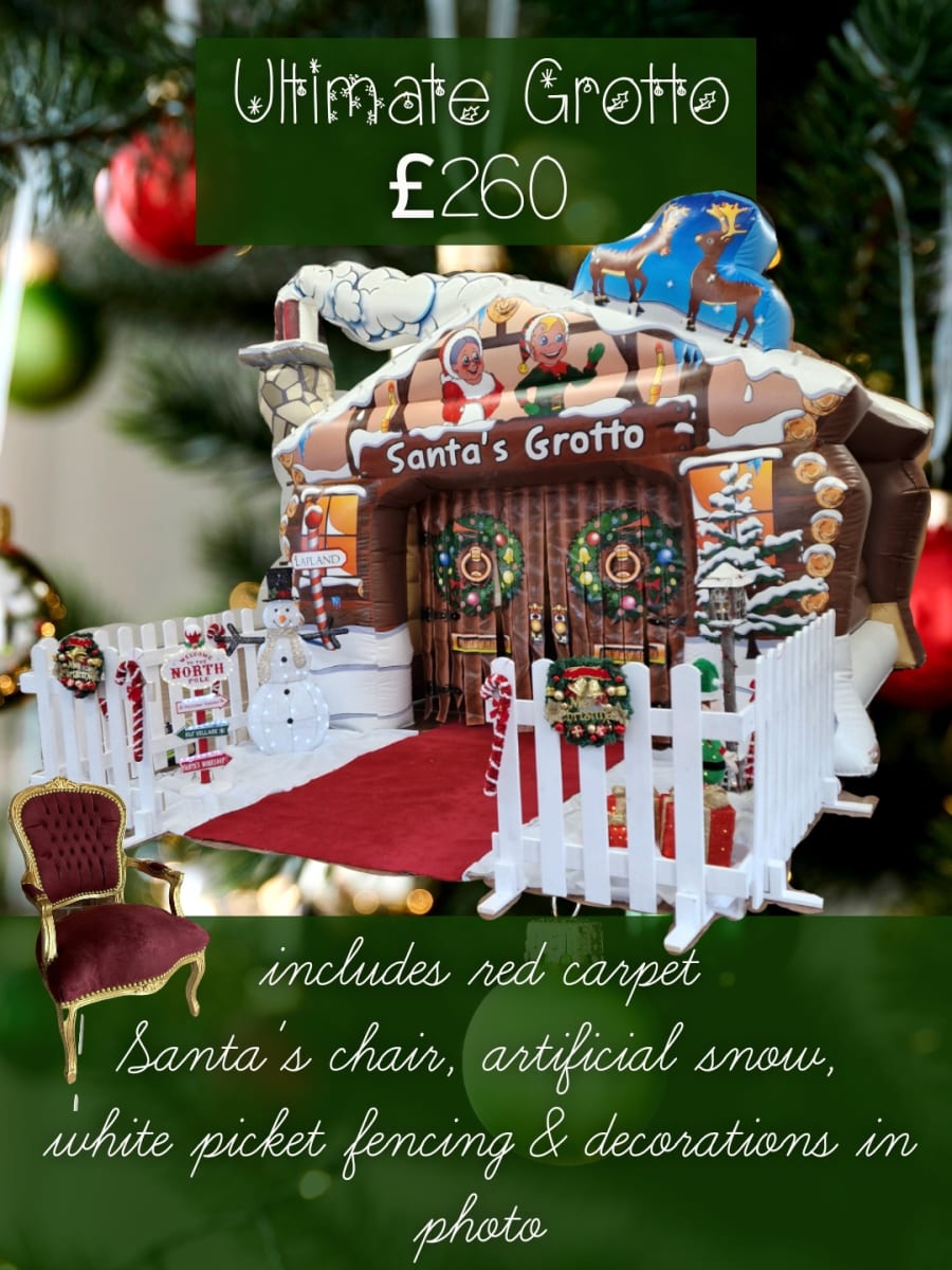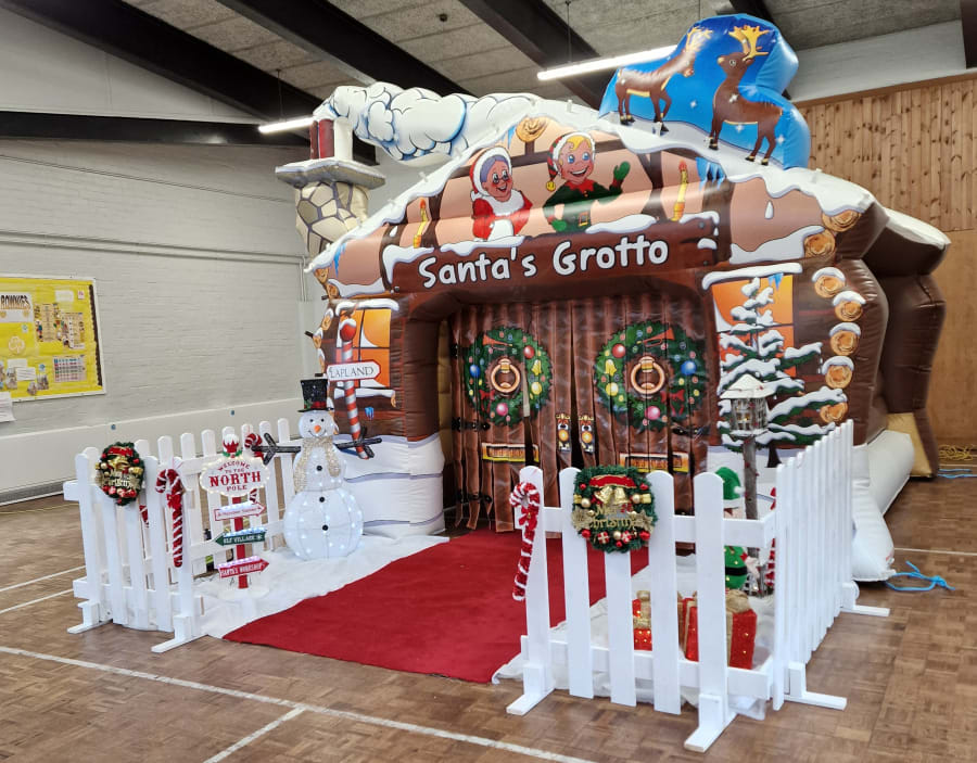 Our Christmas Santas Grotto is an instant inflatable attraction that can be set up in minutes,This product is ideal for shopping centres, garden centres, schools, markets and any other Christmas event you can think of.