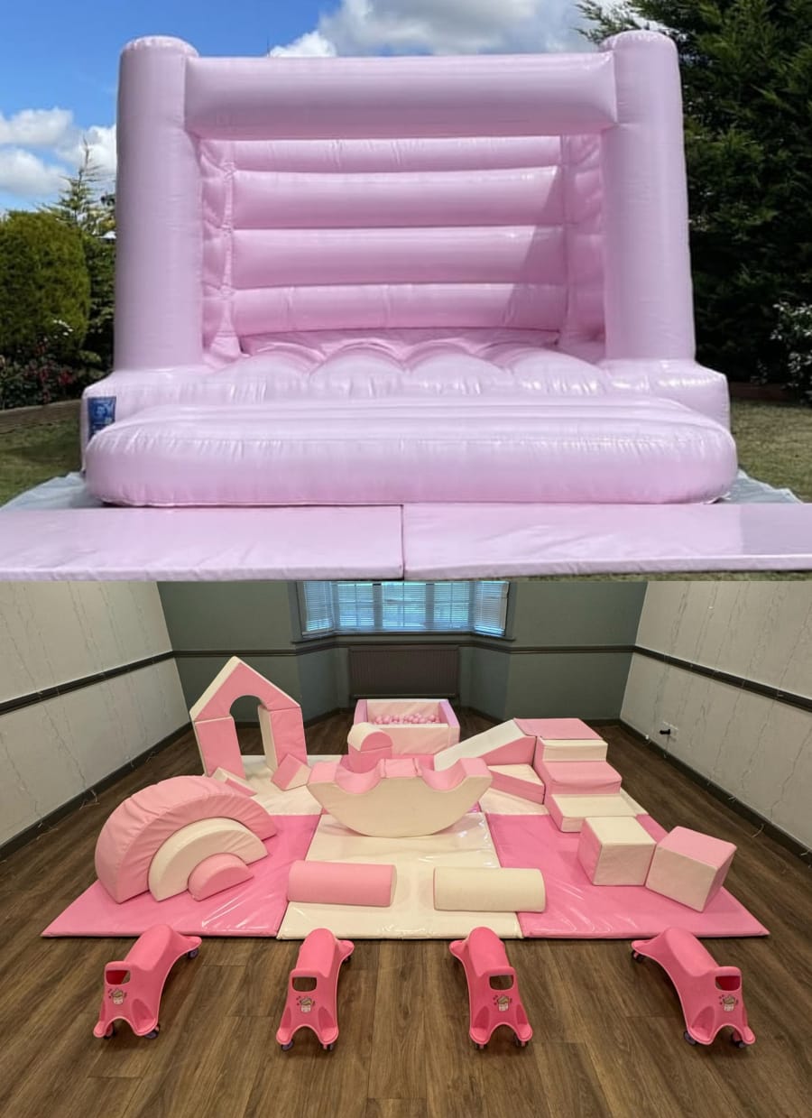 Pastel Pink Bouncy Castle & Soft Play hire in Uxbridge, Watford, Harrow, and Beaconsfield